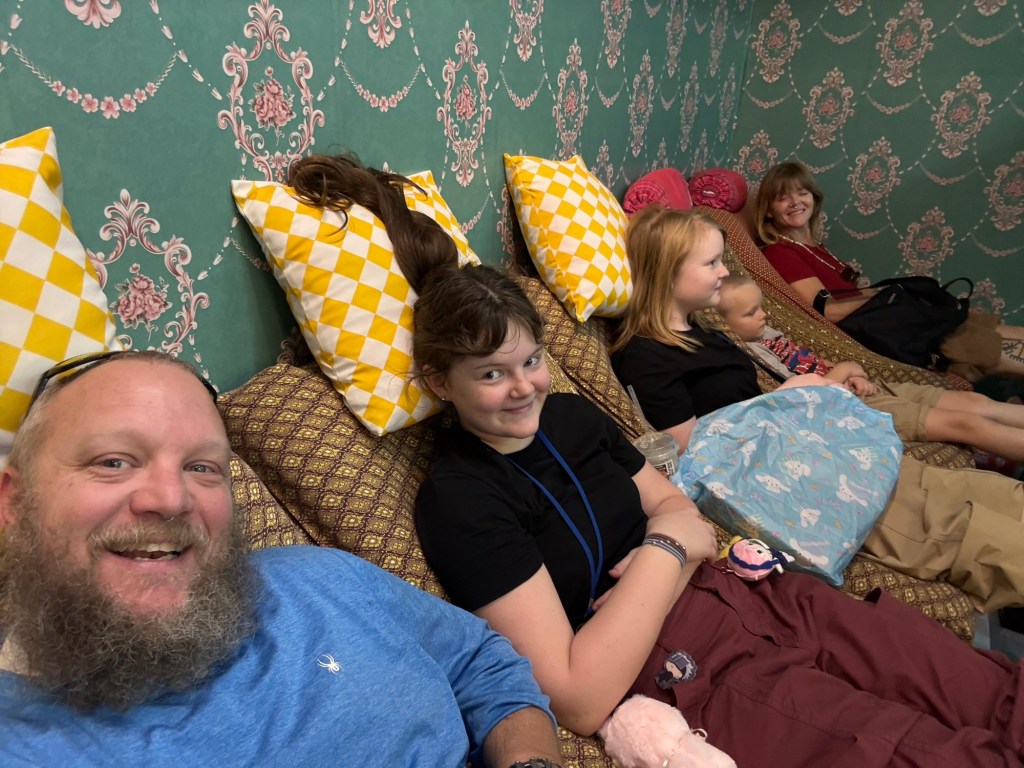 Near the end of the day, a foot massage rescued our aching feet. It felt like a small milestone, proof that our bodies were catching up to the journey. Our youngest quickly became a favorite with the massage lady, smiling and chatting his way through our much-needed break.