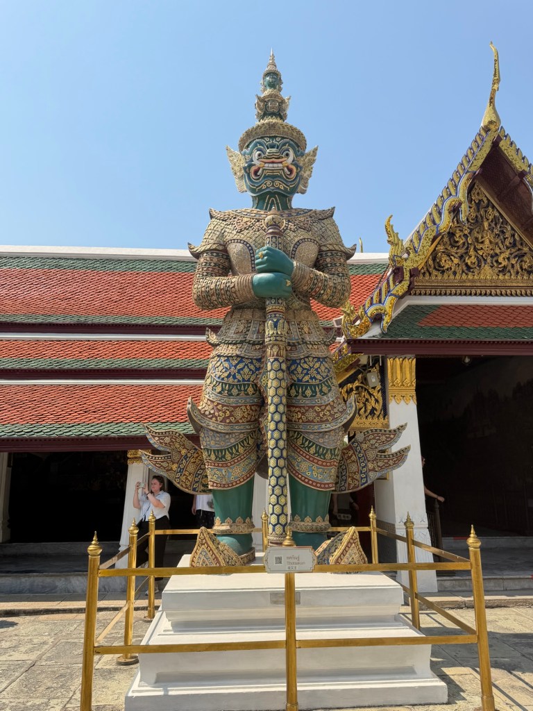 The giant guardian statues at the Grand Palace are impossible to ignore — dramatic, detailed, and larger than life.
