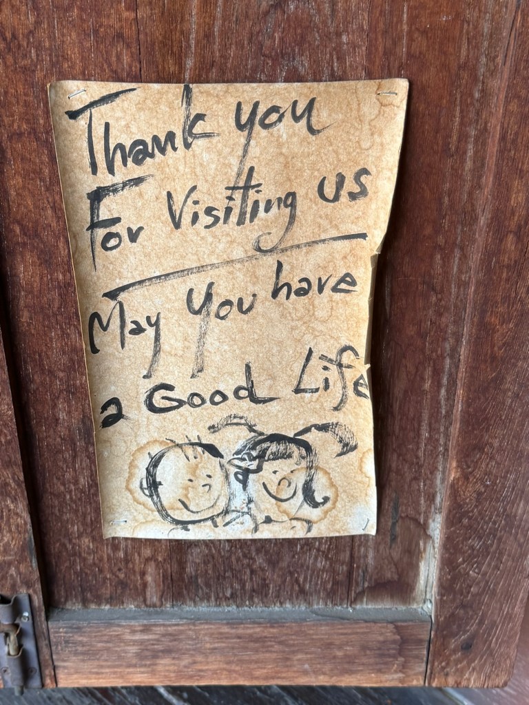 A handwritten note tucked into a wooden wall at The Artist’s House: “Thank you for visiting us. May you have a good life.” The whole space carried that same quiet warmth.